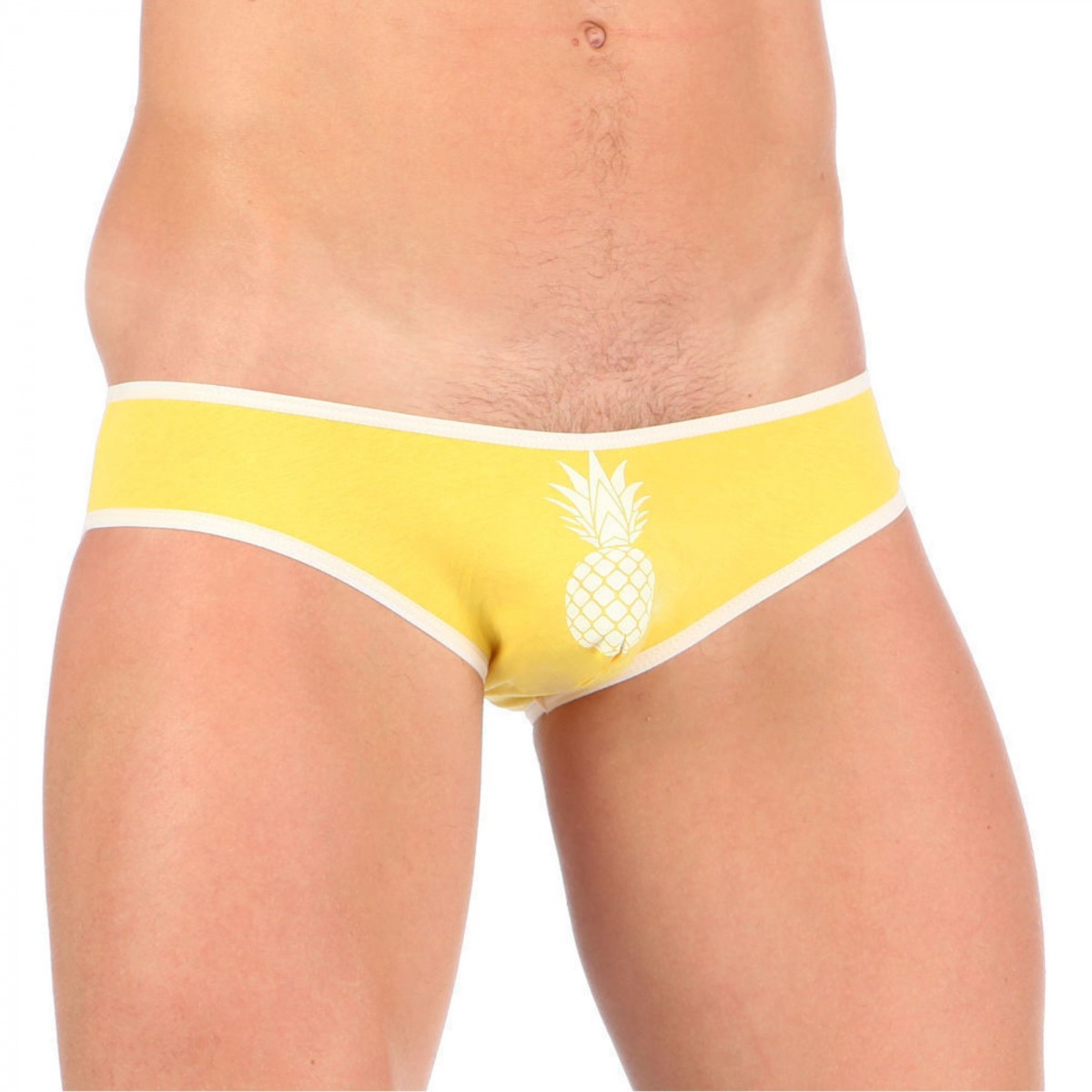 Набор из 3 эротических трусов-слипов с принтом-ананасом (белые, красные и желтые).