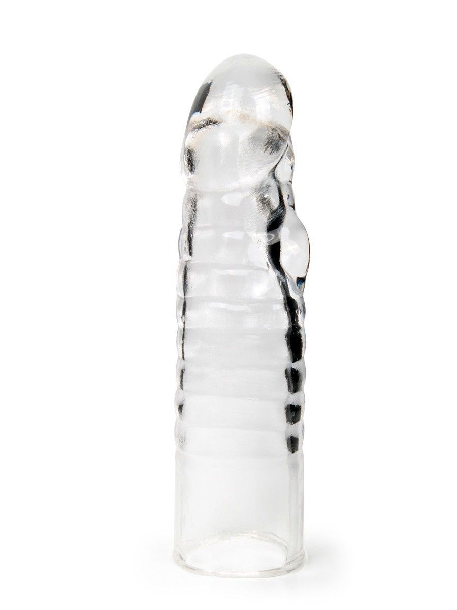 Прозрачная насадка на пенис для увеличения длины и толщины полового члена. Поможет мужчине избавится от комплексов и почувствовать себя настоящим мачо, а его партнёрше подарит множество потрясающих эмоций и незабываемый оргазм. Ярко выраженная мягкая головка, рельефная поверхность счёт трения о стенки влагалища или ануса усилит возбуждение женщины. Интимный аксессуар изготовлен из эластичного материала. Хорошо мнётся и тянется. Прост в применении и уходе.