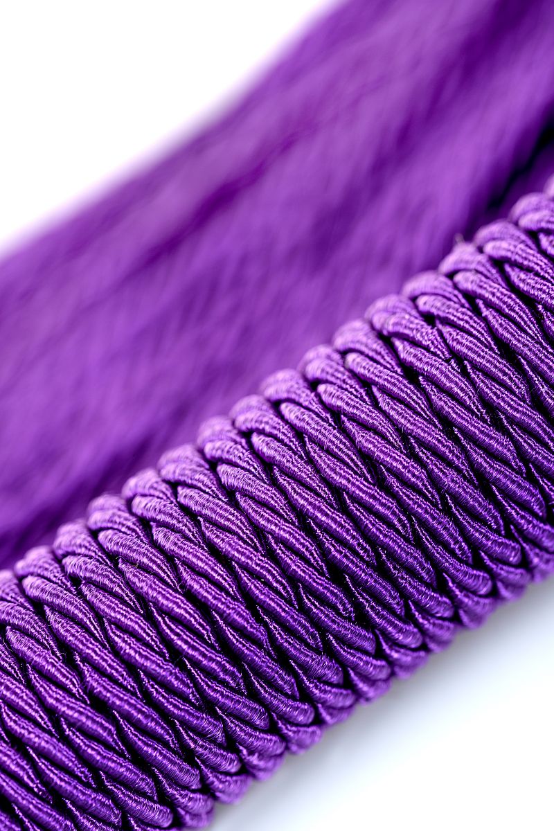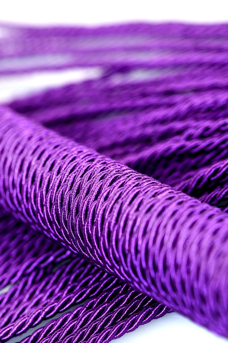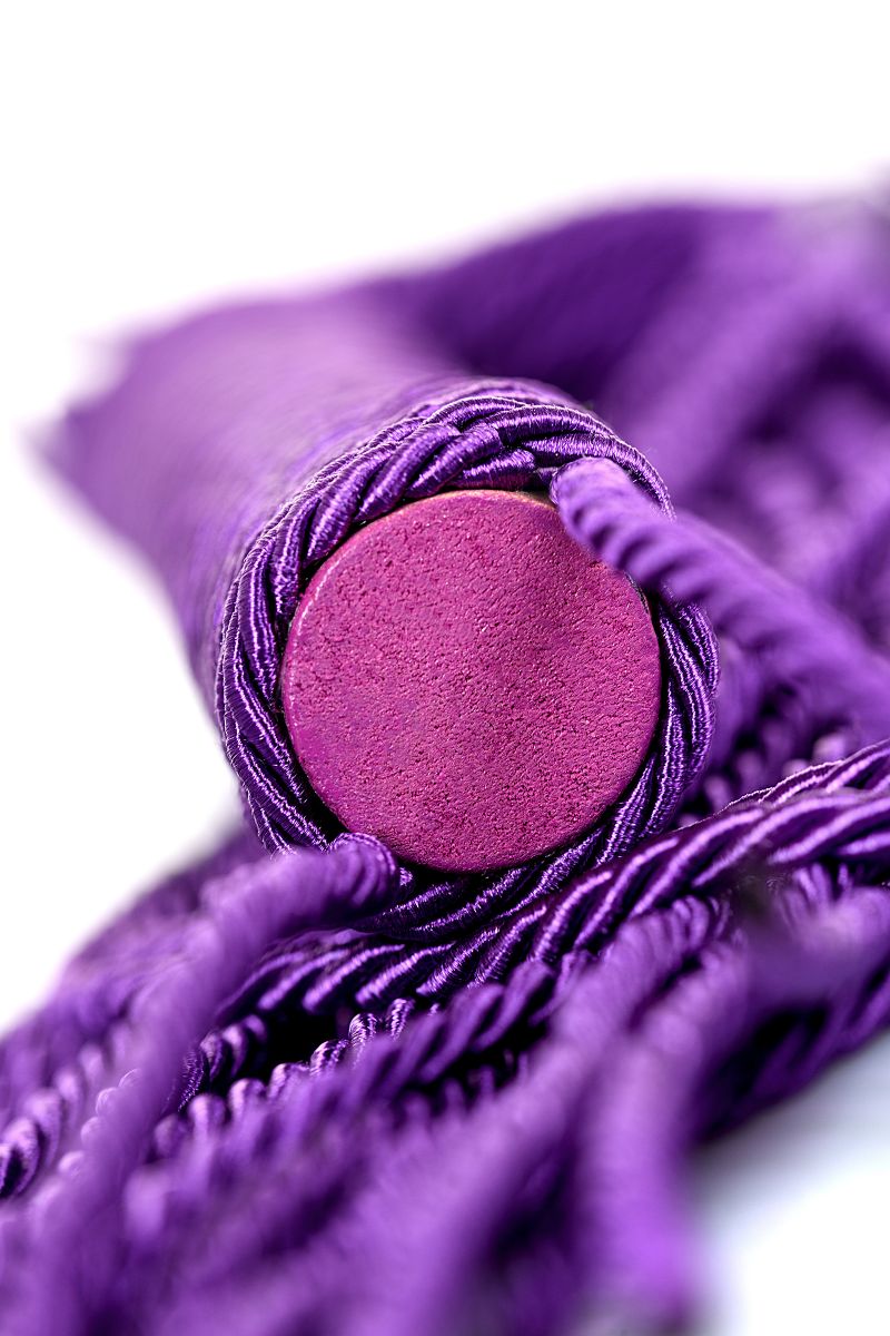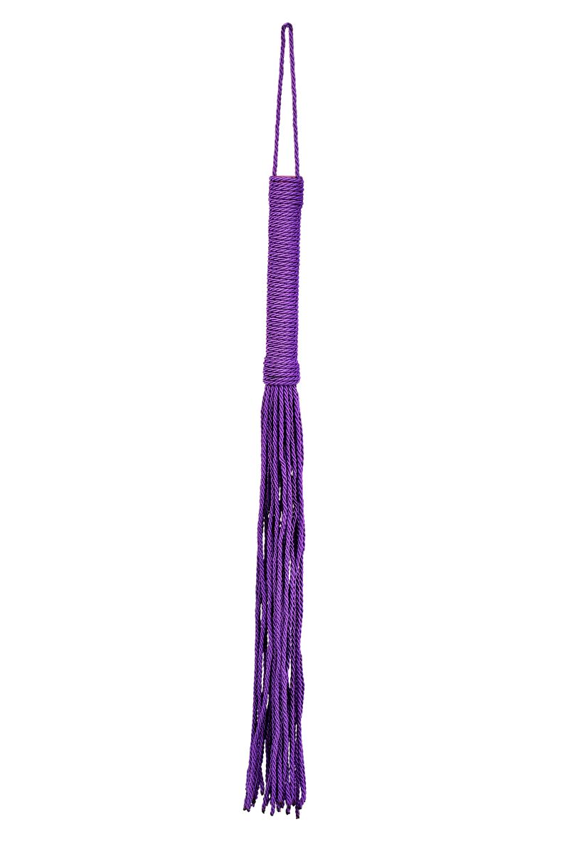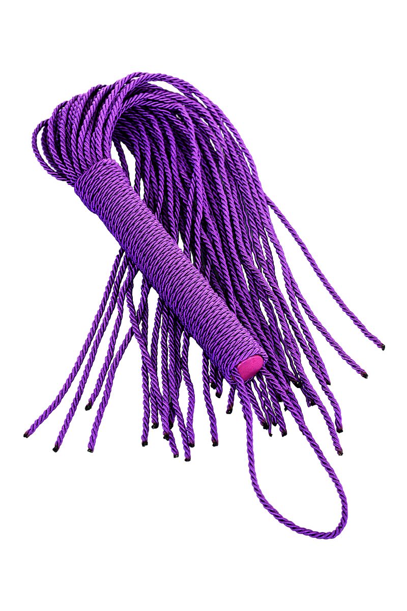 Сиреневый веревочный флоггер с плетеной ручкой мягко разогревает кожу и готовит к более серьезным воздействиям. Длина ручки - 15,5 см. Длина хвоста - 33 см.
