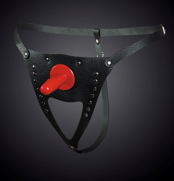 Изготовлены из натуральной кожи. При производстве используется никелированная фурнитура. Размер регулируется ремешками, которые крепятся на бёдрах (от 42 до 50 размера). В комплект входит съёмный пластиковый плаг для насадок. Идеально подходит для использования, как мужчиной, так и женщиной. Длина плага - 6,8 см.