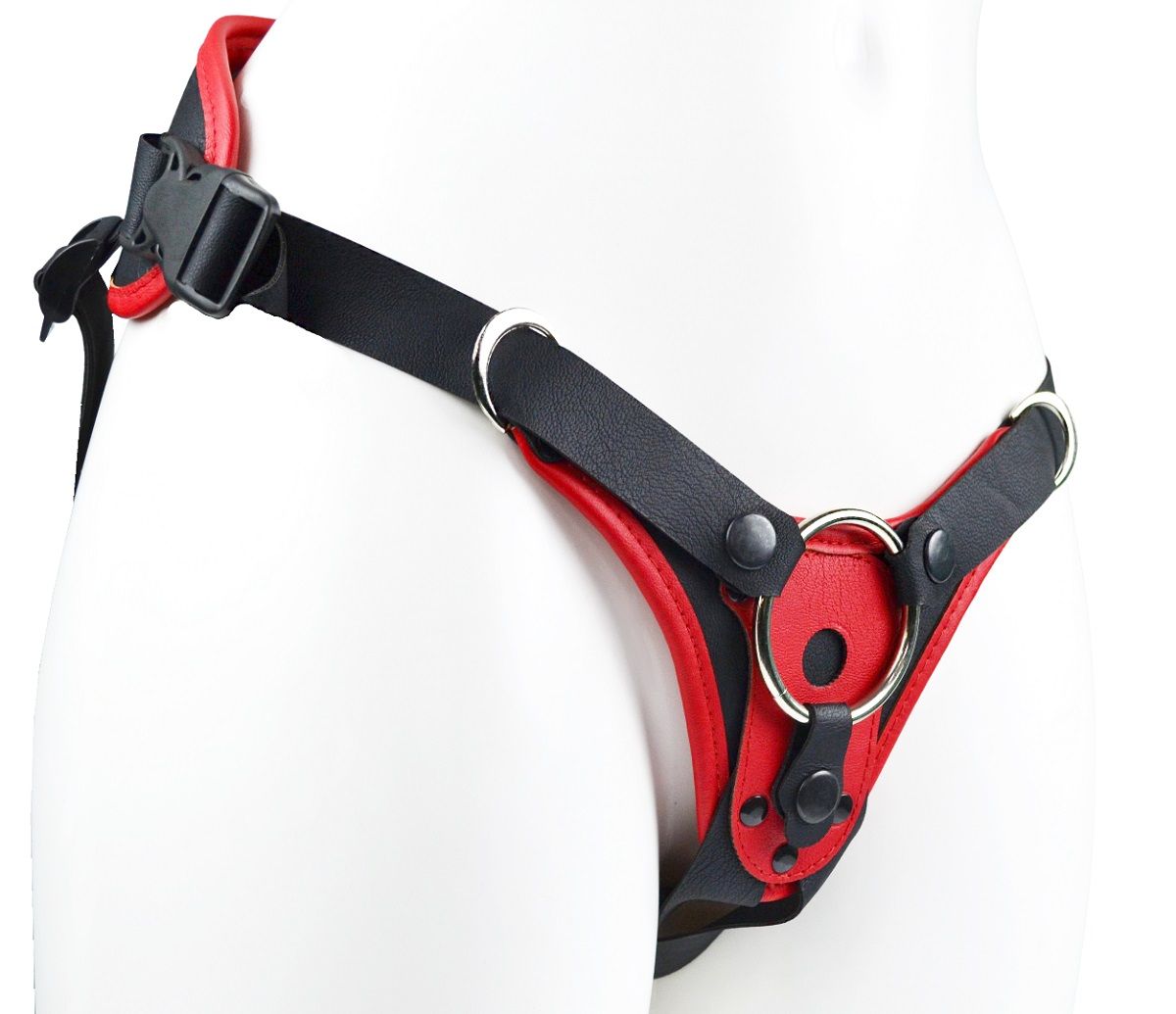 Перед вами третье поколение универсального классического пояса (страпона, харнесса), снабженного передней частью с возможностью установить 2 типа коннекторов (фиксаторов). Акцент сделан на стильном внешнем виде, максимальном комфорте, атравматичности, точности и удобству регулировки. Добавлен бандаж. Бархатный влагопоглощающий внутренний слой, применение экокожи, кожаные стропы, бейка по краю многослойной основы изделия - дополняют картину обновления конструкции. Можно зафиксировать кольцом любой фаллоимитатор на присоске (2 кольца в наборе комплекта с разными диаметрами). Для смены колец – необходимо расстегнуть кнопки ремней вокруг отверстия и поставить подходящее по размеру кольцо. Коннектор (бобышка–соединитель) легко извлекается, разборный, состоит из двух частей, соединяющихся резьбой. Универсальность стыковочного узла позволяет использовать абсолютное большинство насадок, входящих в ассортимент магазинов и продающихся отдельно.