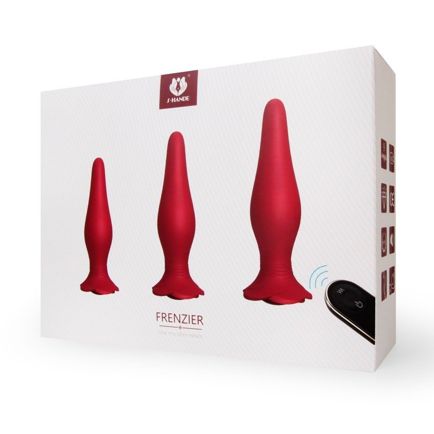 Набор интимных аксессуаров для особых удовольствий. В комплект входят три насадки в виде анальных втулок и виброэлемент. Насадки имеют разный размер, полые внутри. Виброэлемент съёмный и может вставляться в любую из насадок. Секс-игрушки могут использоваться для подготовки к анальному сексу, в качестве игрового элемента во время прелюдии, при интимной близости для получения ещё большего удовольствия. Эргономичная форма насадок способствует комфортному введению и дарит фееричные ощущения. Дистанционный пульт управления позволяет любому из партнёров переключать виброрежимы (9 на выбор) во время занятий любовью. Эротические аксессуары изготовлены из приятного на ощупь материала. Просты в использовании и уходе. В комплекте: вибропуля, 3 полые пробки, пульт ДУ. Длина большой пробки - 14 см, диаметр - 3,8 см. Длина средней пробки - 12,3 см, диаметр - 3,4 см. Длина малой пробки - 10,8 см, диаметр - 3 см. Длина вибропули - 6,9 см, диаметр - 2,6 см.