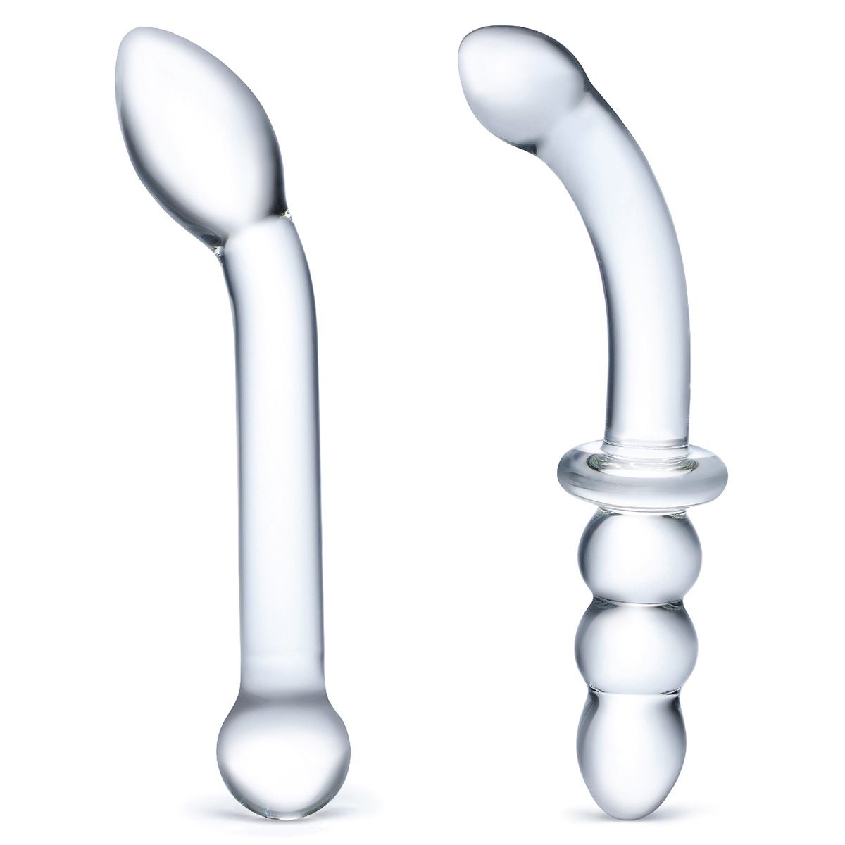 Получите максимум удовольствия от исследования точки G и своей чувственности с двумя гладкими стеклянными фаллоимитаторами, изогнутыми для целенаправленной стимуляции. Этот набор включает классический фаллоимитатор - стимулятор точки G, с выпуклым коническим наконечником для плавного введения, и двусторонний фаллоимитатор с ребристым концом, который отлично подходит для анальной стимуляции. Ограничитель в середине игрушки поможет контролировать глубину. Рабочая длина гладкого стимулятора - 17,1 см., диаметр - 3,4 см. Рабочая длина изогнутой части двустороннего стимулятора - 11,4 см., диаметр - 2,9 см. Рабочая длина фигурной части двустороннего стимулятора - 7,6 см., диаметр - 2,9 см.