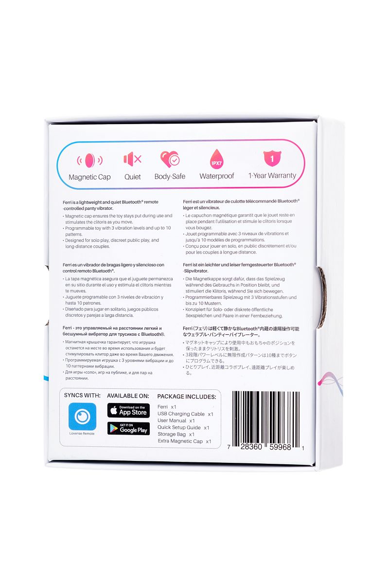 В секс-шопе Orgasmix вы можете купить Розово-черный вибростимулятор в трусики Lovense Ferri артикул 194036 по цене руб. с доставкой в город Абакан. Мы осуществляем доставку по всей России. Ближайшая дата отправки этого товара . Заказы принимаются круглосуточно через интернет-магазин.