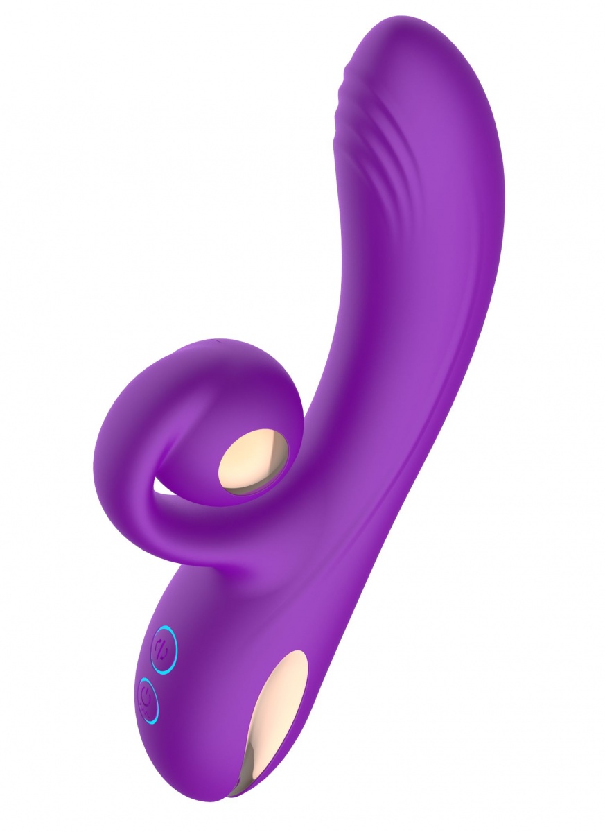 Фиолетовый вибратор-кролик с функцией вращения ствола. 10 режимов вибрации, 10 скорсотей ротации.
